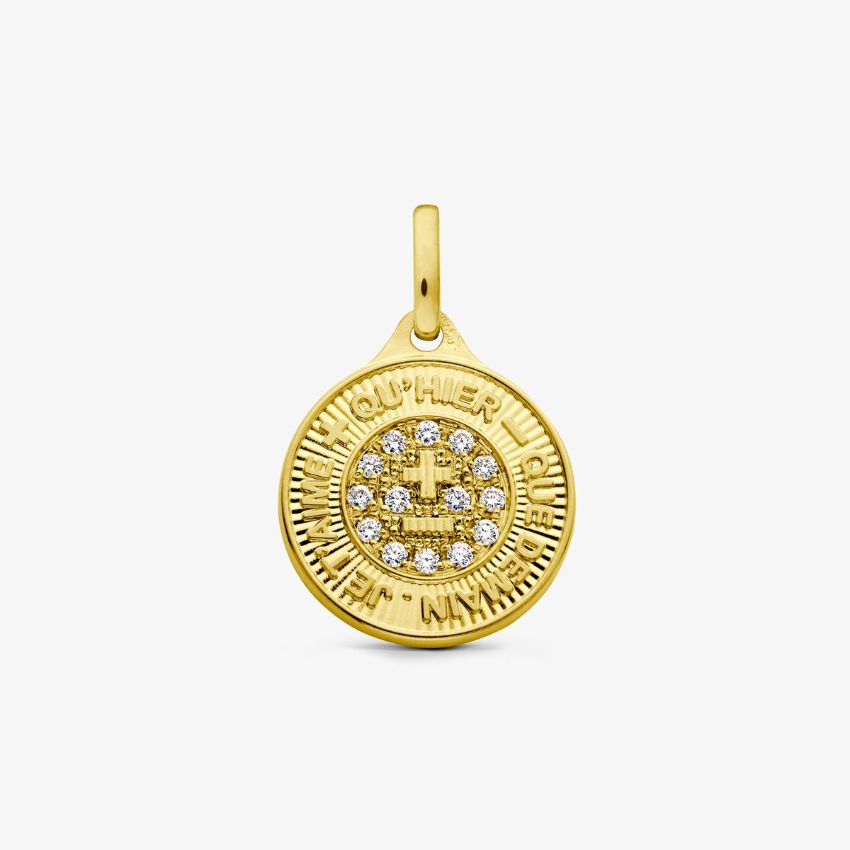 Découvrez cette déclinaison de La Médaille d’Amour L’Élégante pavée de 14 diamants pour un total de 0.063 ct.